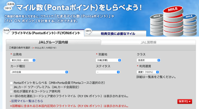 ちなみに、マイルを使って予約する特典航空券の場合はフライトマイルは貯まらないので、お金を出して航空券を購入した場合のみフライトマイルが貯まります。